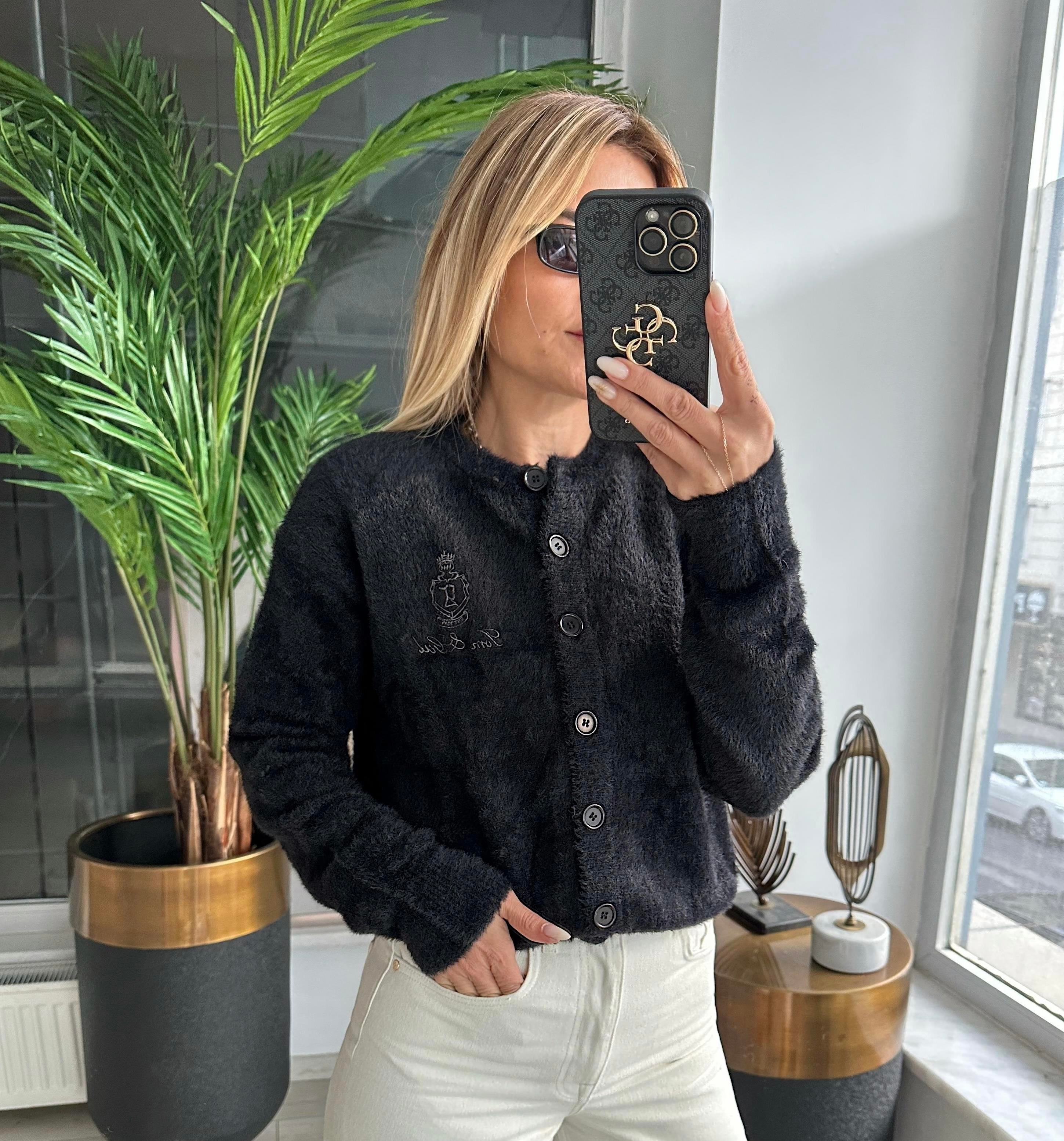 Siyah Angora Nakışlı Hırka